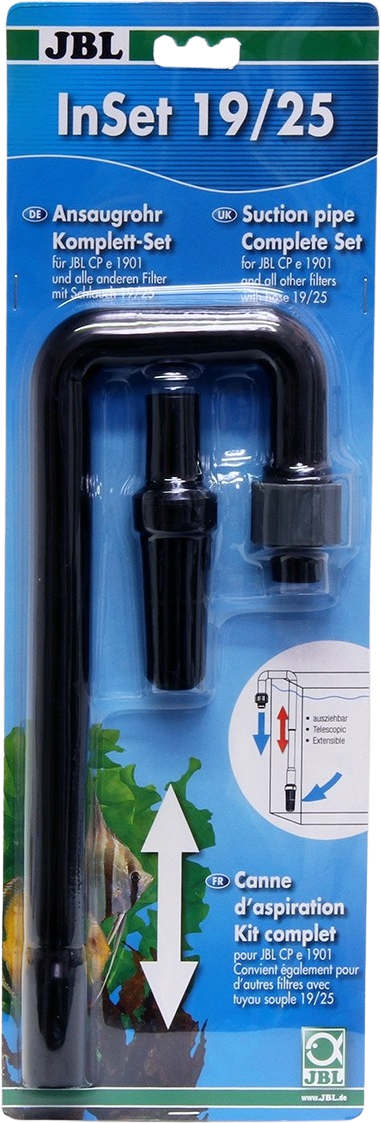 De aanzuigset wordt aangesloten op de slang van het buitenfilter (niet meegeleverd), de aanzuigzeef wordt in het aquarium geplaatst. De aanzuigbuis met hoek is uitschuifbaar. De maat 12/16 is 33-49 cm lang inclusief de invoermand. 16/22=36-55cm, 19/25=36-55cm.