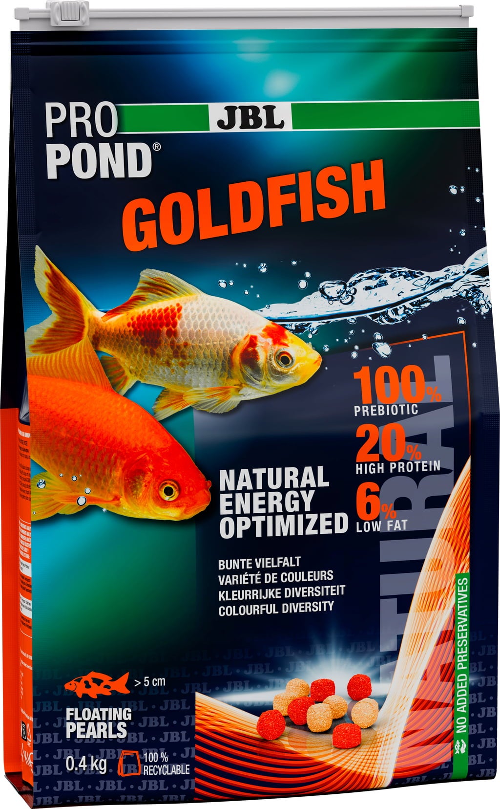 De ProPond Goldfish van JBL is een compleet drijvend voer dat ideaal is voor goudvissen en andere vijvervissen en het hele jaar door gevoerd kan worden. Het bevat tarwe, zalm, garnalen en spinazie en kan de kleurrijkheid van je goudvissen ondersteunen!