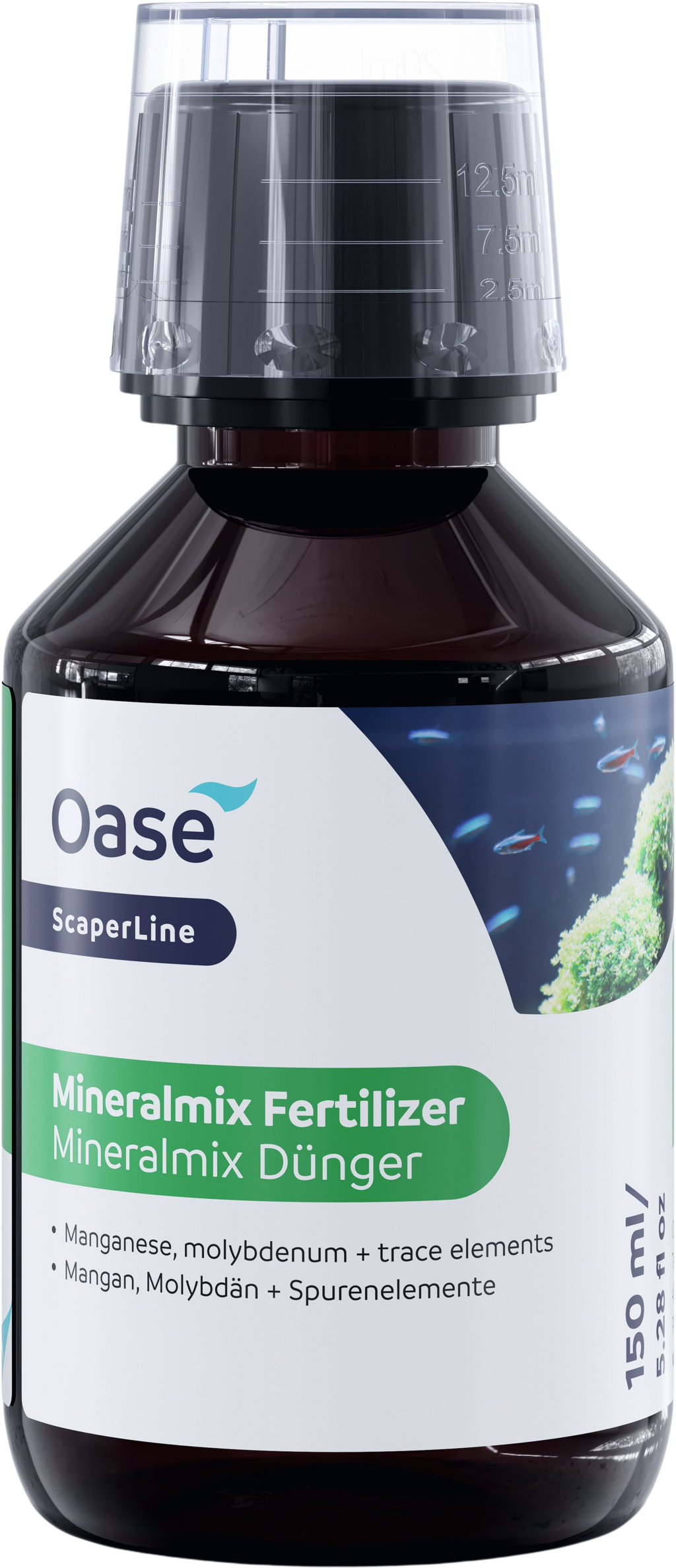 ScaperLine MineralMix van Oase is een vloeibare meststof die de planten voorziet van belangrijke voedingsstoffen zoals stikstof, kalium, ijzer en mangaan. Deze voedingsstoffen hebben de planten nodig om hun intense kleuren te behouden en uit te groeien tot gezonde planten.