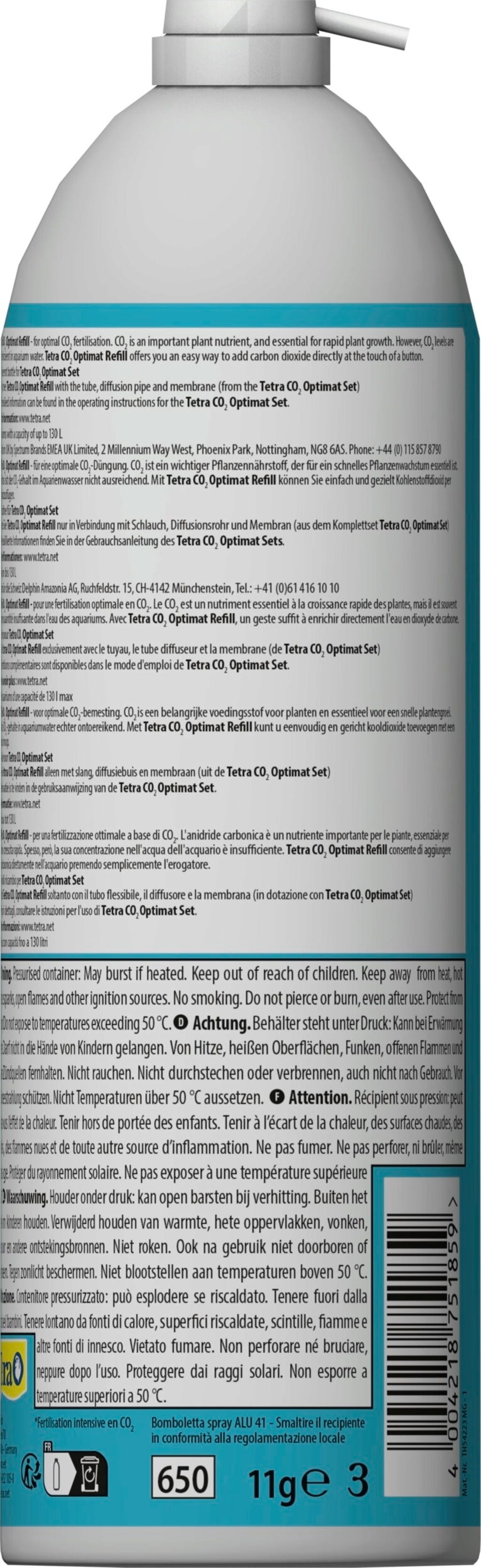 De Tetra CO2 Optimat Refill is een vervangende fles voor gebruik bij de Tetra CO2 Optimat Complete Set voor mooie en gezonde waterplanten in zoetwateraquaria tot 130 liter.